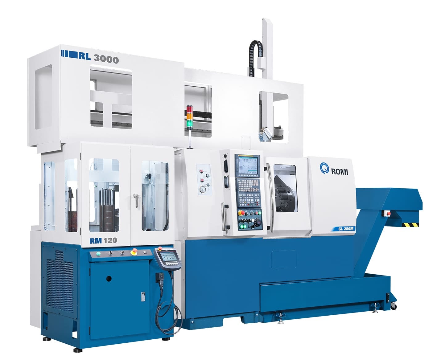 O destaque fica para o Centro de Torneamento ROMI GL 280M com sistema de automação ROMI, do tipo Gantry Loader, que foi lançado em maio deste ano durante a EXPOMAFE. Equipado com magazine porta peças de 8 estações e avanço rápido de 60 m/min, o sistema proporciona altos ganhos de produtividade e rápido retorno do investimento.
